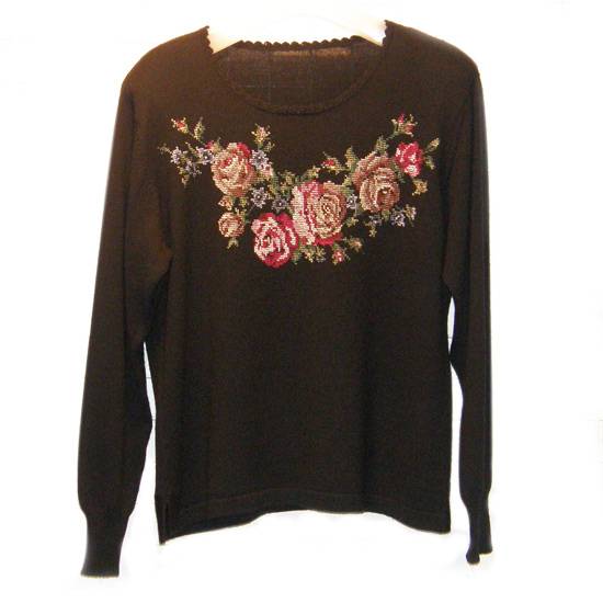 • The ladies sweater features a cross floral embroidery.
