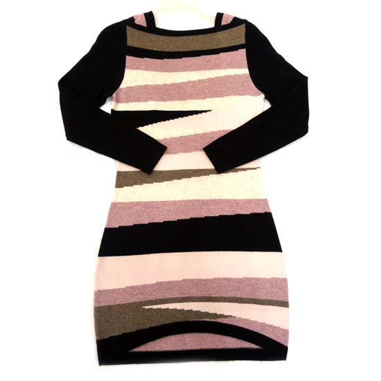 This is a ladies' sweater dress boasting an eye-catching design. It is designed with colorful patterns for added uniqueness and style. The full cashmere fabric gives you a comfortable wearing experience.