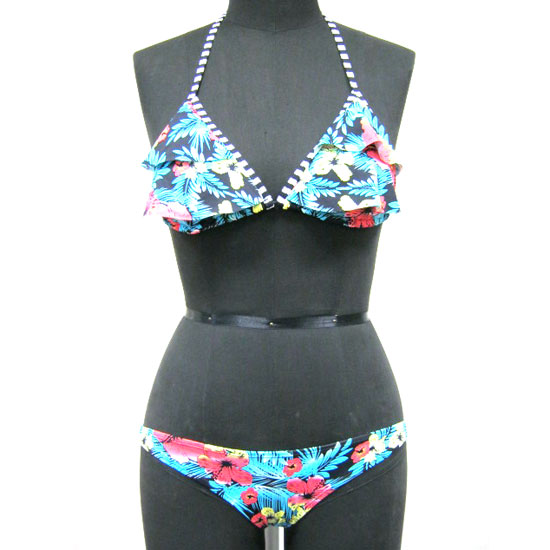 This set of ladies' bikini swimwear with an eye-catching design. It is finely printed with floral patterns in bright colors. This set is made of high-quality material with excellent craftsmanship.