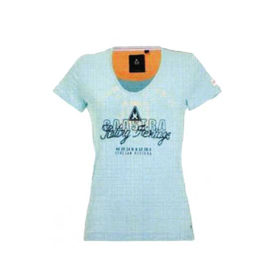 This ladies' short-sleeve T-shirt is printed with bold logos on the front. Made of 100% cotton, the T-shirt is breathable and comfortable to wear. The scoop neck and slimming waistline finish the design of this T-shirt