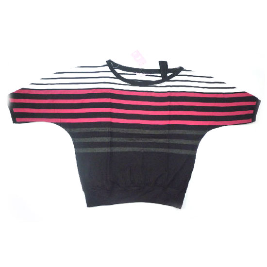This is a ladies’ T-shirt that is accented with allover striped patterns. It is well made to deliver a soft and natural texture. The classic round neckline and short sleeves complete this stylish T-shirt.