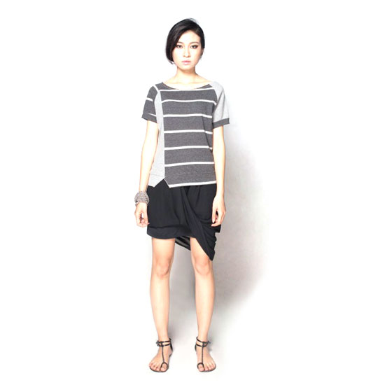 This is a ladies’ T-shirt that features a classic round neckline and short sleeves. It is accented with allover striped patterns for a decorative touch. This ladies’ T-shirt is an ideal addition to complete your wardrobe.