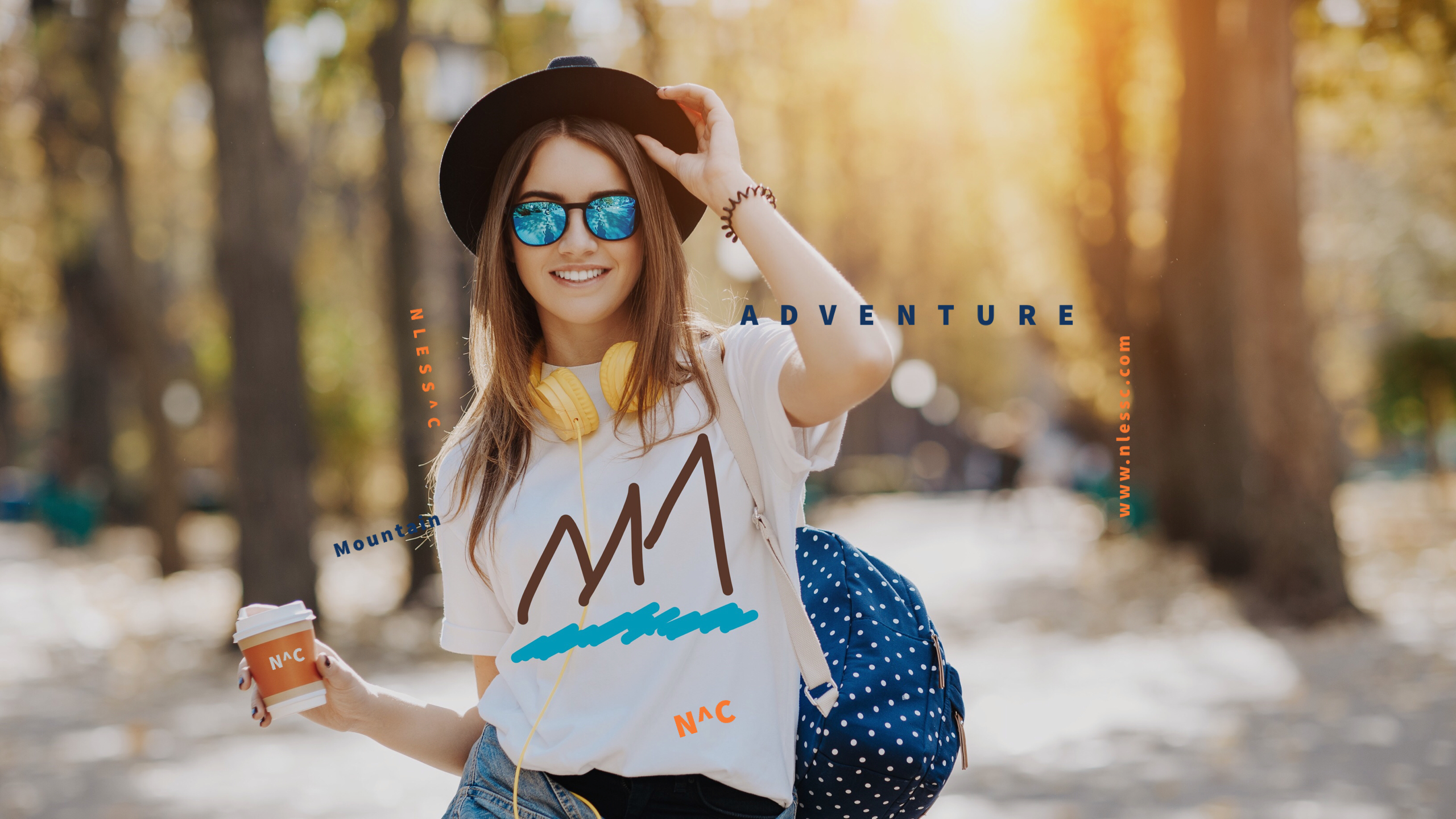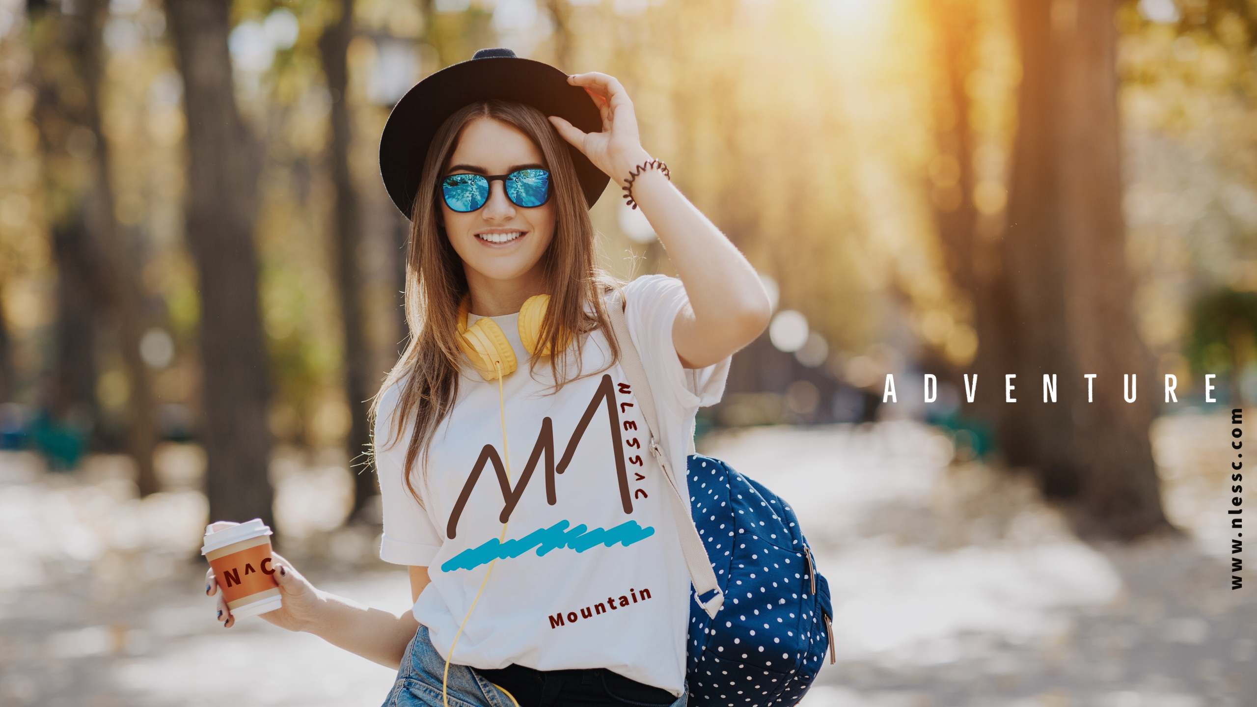 Ladies T Shirt with Mountain and Sea Hand-Drawing-Like Printing