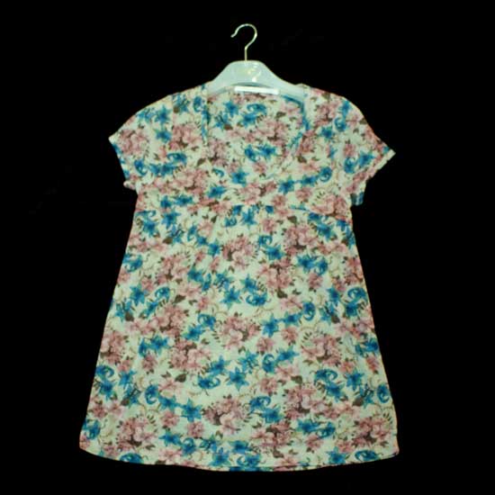 The ladies' T-shirt comes in a cap-sleeved and round-neck design. The delicate floral patterns remind you of the beautiful spring season. This casual T-shirt is great for summer.