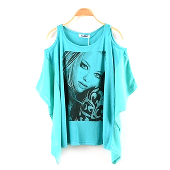 This is a ladies' sleeveless T-shirt coming with a greenish blue finish. It is printed with a big photo at the front. The loose fit makes it stylish and comfortable to wear.