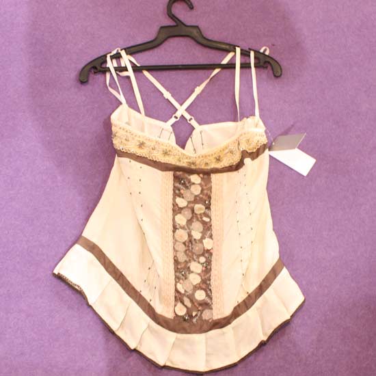 The ladies' tank top features embroidered patterns and pleated detailing at the hem for added style. The high-quality silk material offers a smooth and silky texture. This delicate tank top is a great addition to your wardrobe.