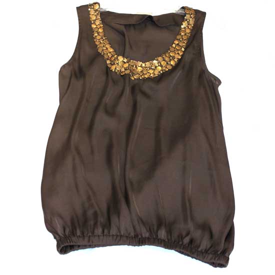 The elegant ladies' tank top features a sequined round neckline. It comes with pleated detailing throughout and an elastic hemline. Set this tank top off with some skinny pants and seriously high heels.