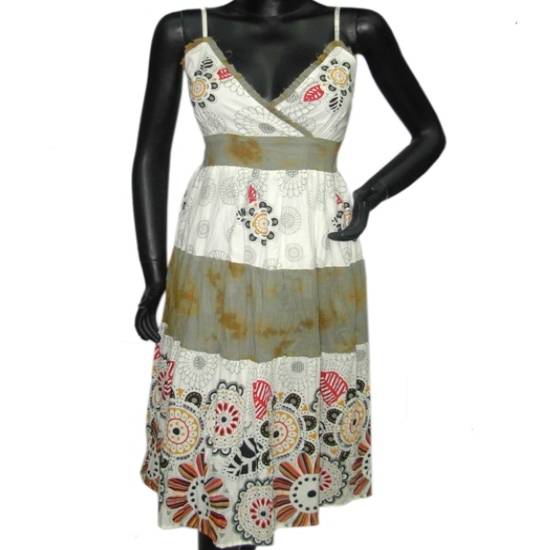 This flowing maxi dress comes with a girly design of tie-dyed tiers and floral patterns. It has spaghetti shoulder straps and a surplice V-neckline trimmed with frills. The ribbon elastic on the back provides a slim shape. Gauzy fabric makes it great for the hot summer days.