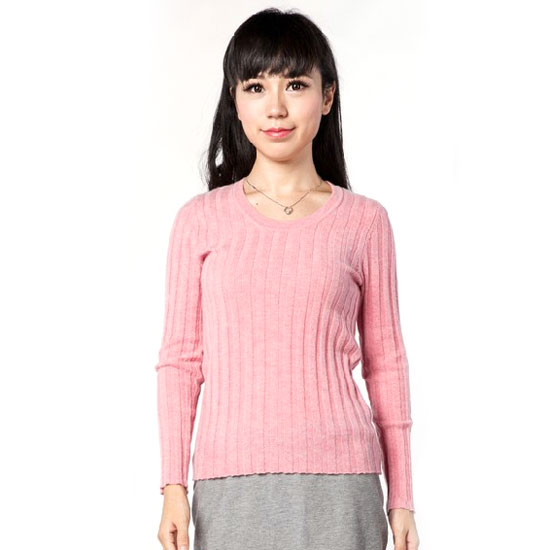 This is a ladies' top coming with a pink finish. It features a round neckline and long sleeves for a comfortable fit. It is perfect to pair with skirts and loafers.