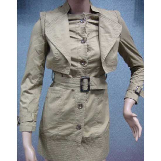 Displayed here is a fashionable trench coat designed for ladies. It features a waist belt for a flattering fit. This trench coat is characterized by the oversized collar.