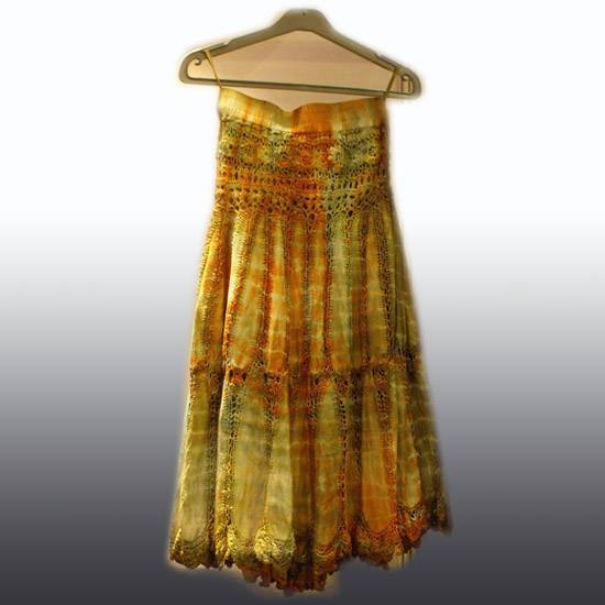 This beautiful dress comes in a short length, which falls above the knees. The tube dress features lovely crocheted floral patterns along the bustline. It boasts an asymmetrical flared hemline, which showcases a touch of uniqueness. This fashionable dress is the perfect addition to your wardrobe.