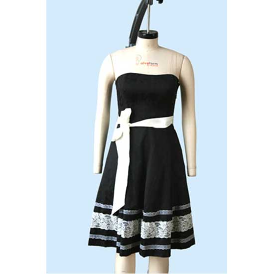 This ladies' dress flaunts an elegant design in classic black and white. The delicate prints at the skirt highlight the design. A white waist strap is added to finish the slim cutting.