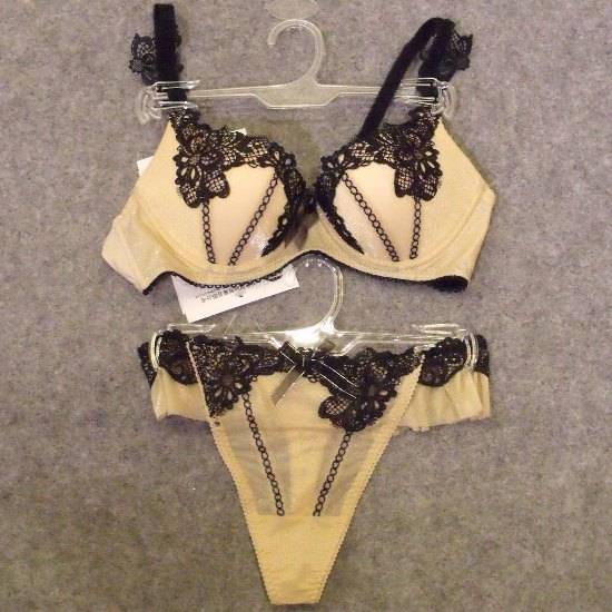 Featured is an underwear set including a brassiere and a pair of panties. The bra boasts a hook closure and adjustable straps. It comes with an underwire styling that provides support for wearing. Both items are nicely finished with lace trim that adds a feminine touch.