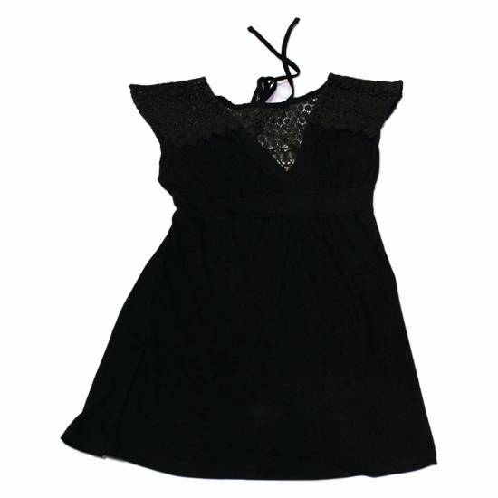 This ladies' V-neck blouse features a mysterious style in black. The shoulder and front of the blouse are well-decorated with delicate lace. This black blouse is adaptable to different styles of outfits.