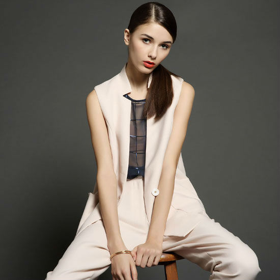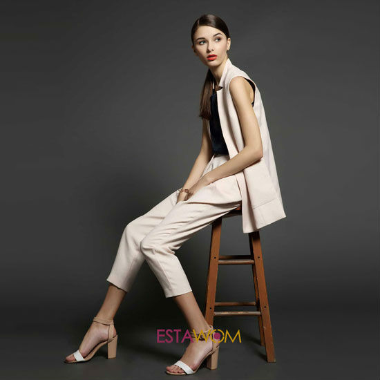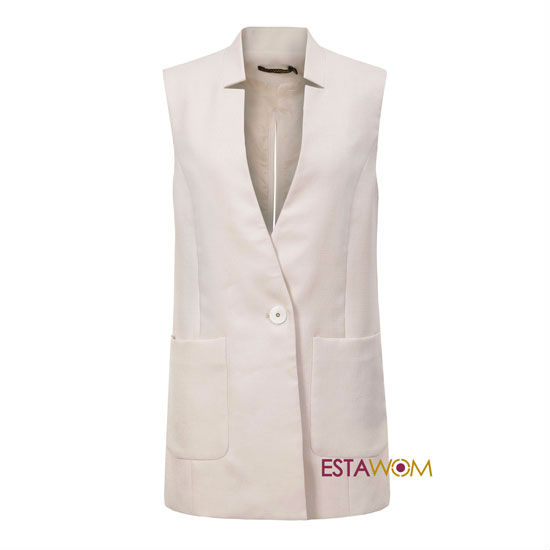 This is a ladies' vest jacket that is made of top-quality material for a natural texture. It is designed with a single-button front and two side pockets. This classic sleeveless vest jacket is an ideal addition to complete your wardrobe.