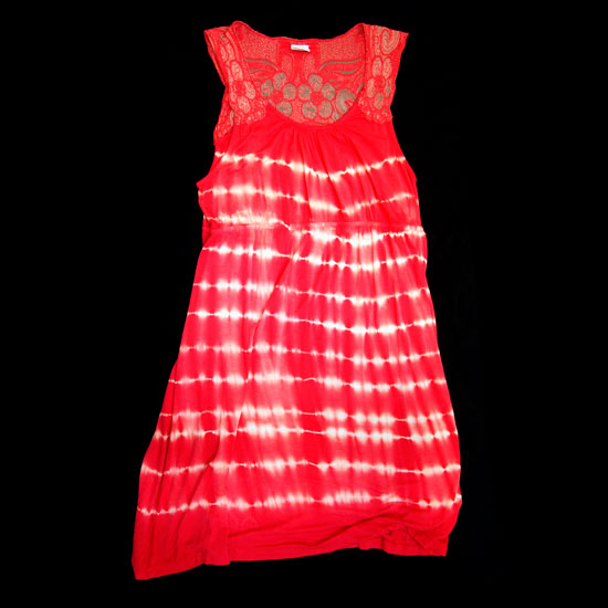 This brilliant red hued sundress features unique tie-dyed patterns for a charming look. The delicate lace design highlights the dress for an alluring touch. This attention-grabbing sundress makes an ideal addition to ladies’ summer wardrobe.