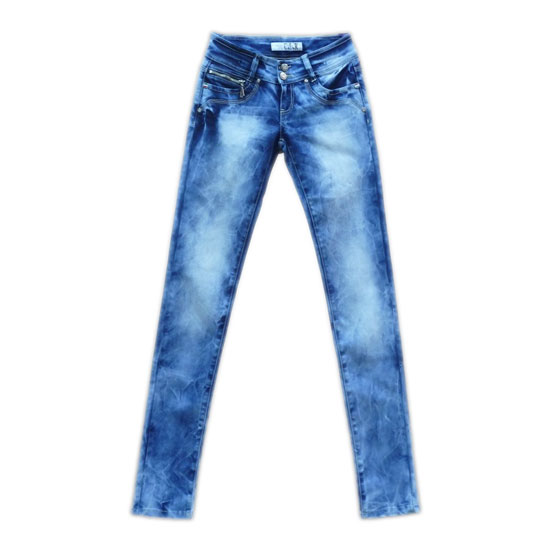 This pair of ladies' jeans features a heavy wash effect on the thighs. It is made of soft denim to give a comfortable touch. These jeans make a great bottom item for mix and match.