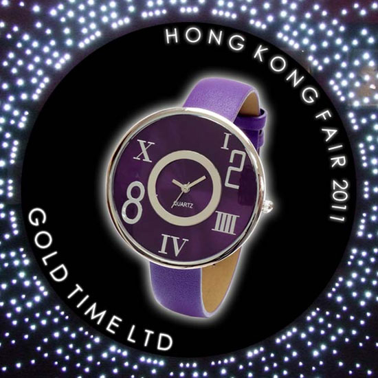 This showcased watch comes with purple leather straps for a touch of modern feminine style. The big round case is decorated with abstract numeric displays. The straps are sleek, making a chic contrast with the bold case. This piece simply lines your wrist with elegance.