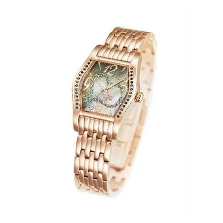 • Its dials of mother-of-pearl transcend the steel or rose gold of its noble cases, on which romped about thirty diamonds.