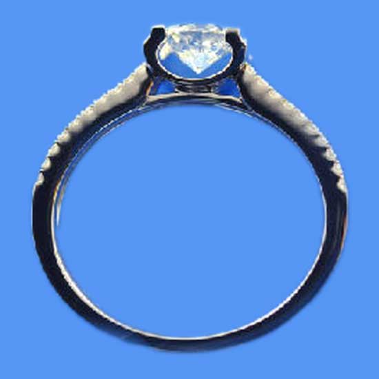 The displayed ladies’ ring features a sparkling stone for attractiveness. The 18K white gold construction offers the ring a polished finish. This gorgeous white gold ring is easy to match and mix.