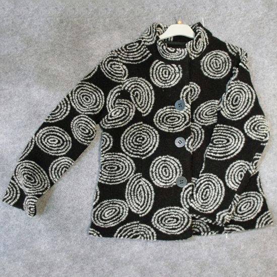 The elegant long-sleeve coat comes with a mandarin collar and a front button-up closure. It features clutches of concentric circular patterns in white throughout. Finely tailored with exquisite thermal fabric, it brings comfort to wearing and assures you of gratifying warmth.
