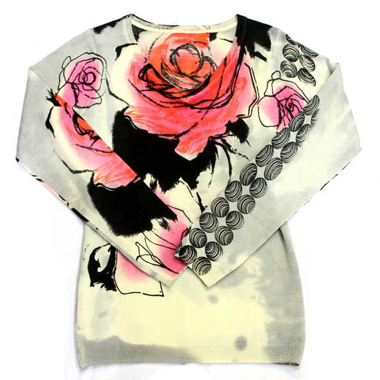 This woolen sweater highlights remarkable rose patterns in artistic strokes. The pair of long sleeves is printed with two rows of beads with a grained body. This soft and beautiful woolen sweater simply feels heavenly on the body.