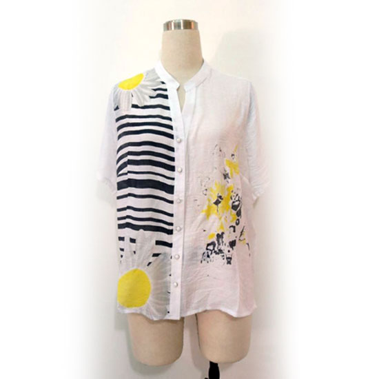 This loose-fitting, collarless woven blouse comes with contrasting prints for a stylish look. Made of quality material, this blouse is soft, light and comfortable for wearing. The blouse pairs well with plain, high-waisted pencil skirts.