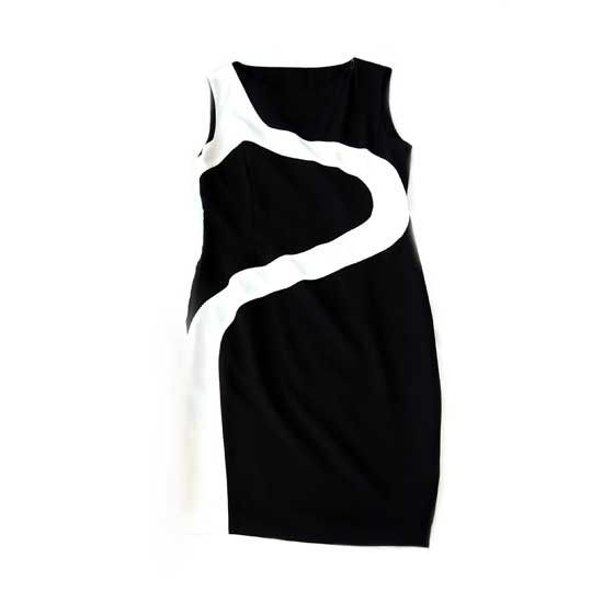 This ladies' woven dress features a tight-fit design for showcasing a female's figure perfectly. Made of 100% polyester, this gorgeous dress offers a soft and comfortable fit to wearers. This classic black-and-white design highlights this sleeveless dress.