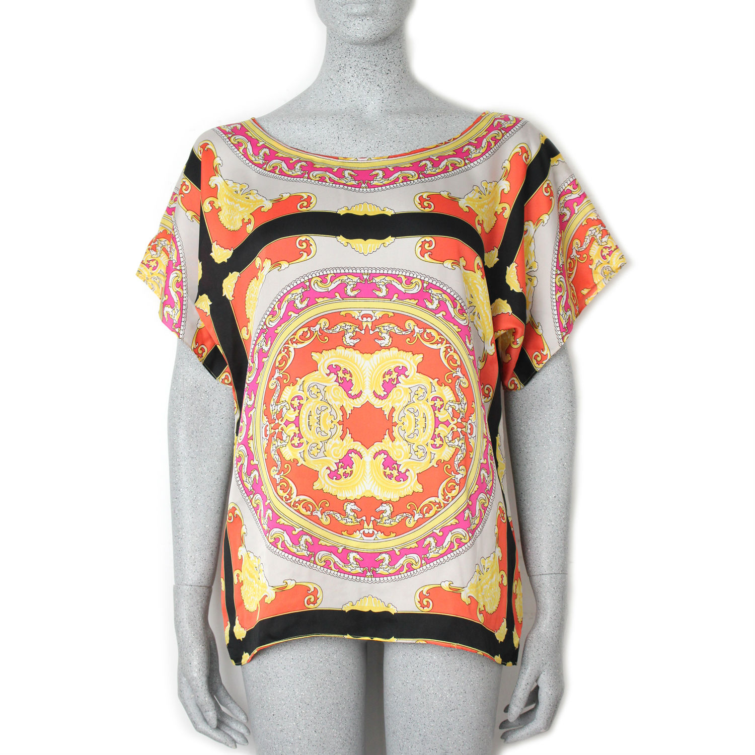 This loose-fit top makes a great addition to your summer wardrobe. The top features a wide crewneck which flaunts your collarbones. Contrasting stripes are printed over the allover heraldic pattern for a stylish touch. Pair this item with shorts and you are good to go.