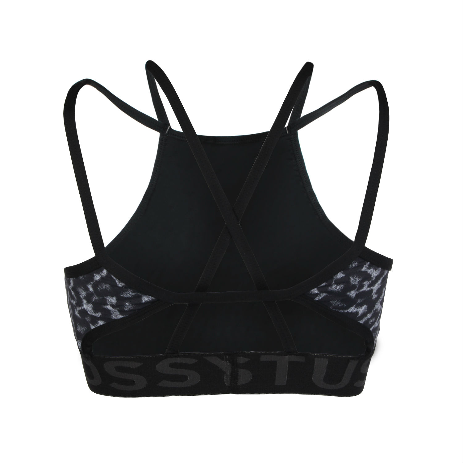 The highlighted ladies yoga top has a strappy design and offers a comfortable and supportive fit. It has a halter neck and is adorned with abstract patterns on the sides. This yoga top flaunts a stretchy construction and is great for workouts and daily wear.