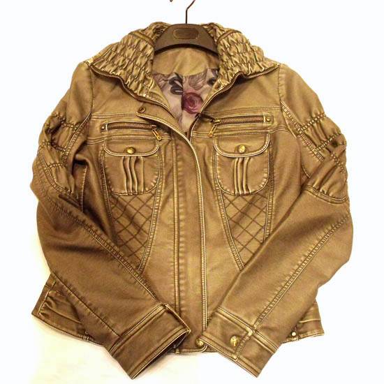 The fashionable ladies' jacket flaunts a PU construction for lasting beauty. It comes with a zip-up closure for easy wearing. This zip-up jacket is a great addition to your fall wardrobe.