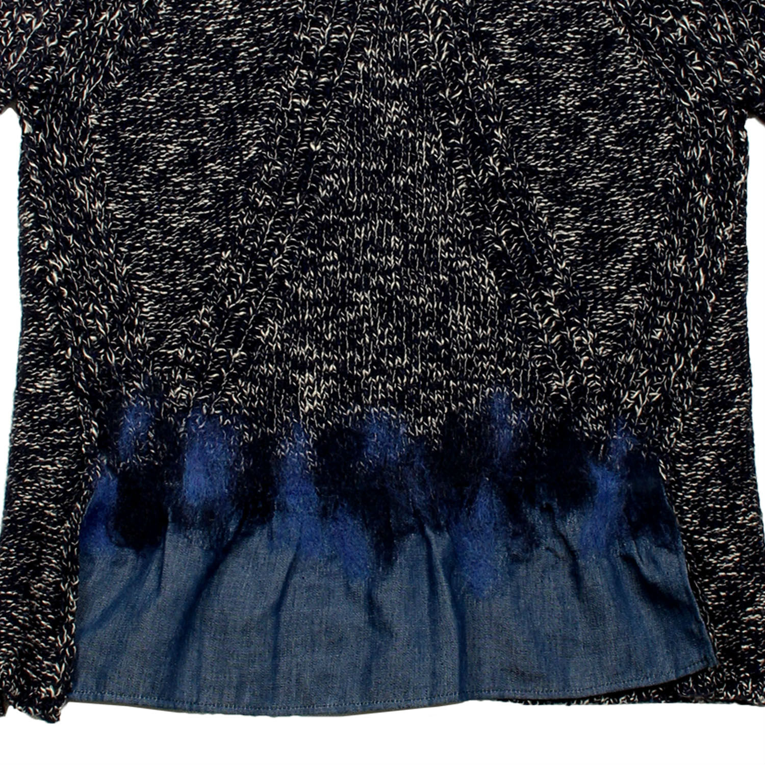 - Needle punched jeans hem line at the front