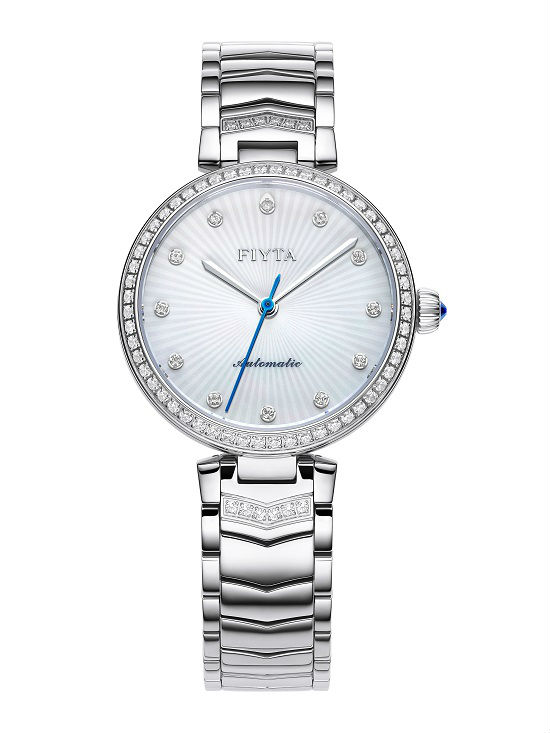 With a consistent color tone, this woman's watch made of lustrous stainless steel is the safest option to wear in the workplace. The tiny gleaming stones encompassing the dial grab others' attention in a decent fashion. The waterdrop diamond at 12 o'clock and the outstanding colored second hand on the dial give an accent to the timepiece.