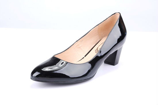 calf patent upper, pigskin ling&sock, rubber sole, patent heel