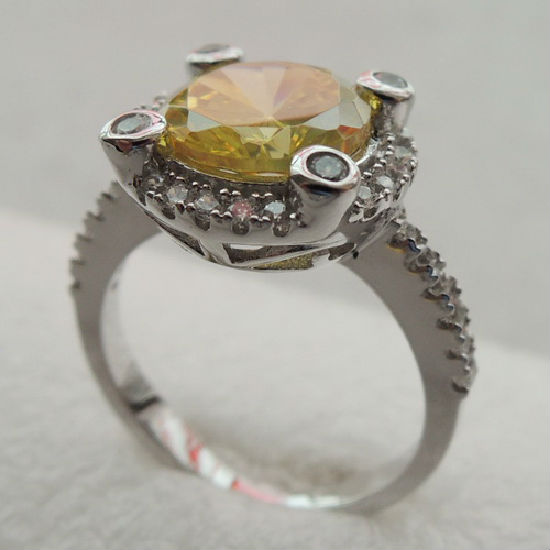 This alluring ladies ring centers a yellow appealing stone encircled by a halo of smaller ornaments. The highly-polished ring band is decorated with some tiny adornments for extra sparkle. Appealing and fashionable, this ladies ring is finely designed to blend with many wardrobe choices.