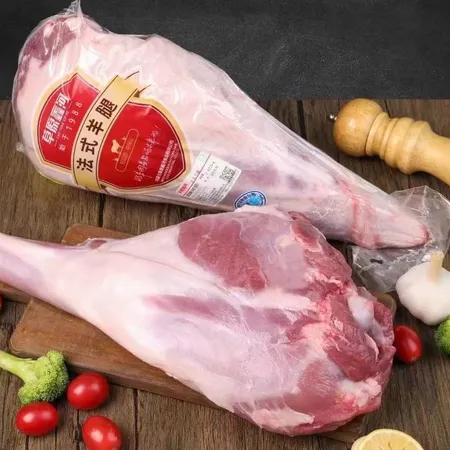Processing technology: Arcuately cut the bone-in lamb hind leg, retain the tendon and crural tendon, trim cleanly, and remove the posterior fascia.