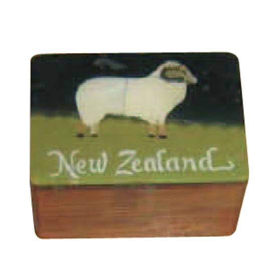 This jewellery box is made of laminated shells. It features a sheep on a grassland, with the word "New Zealand" under it. This pictures creates an image of nature in a foreign country. For people who enjoy the freedom in a huge grassland, this jewellery box can satisfy their desire with simply one look.