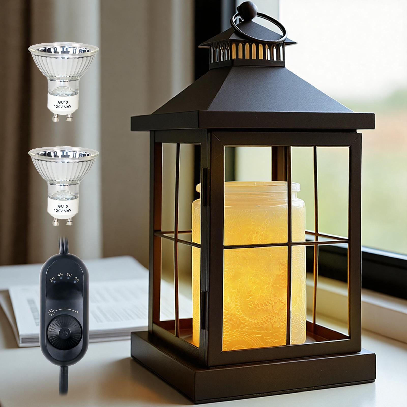 Classic lantern design, adjustable light brightness, timer function. It can melt scented candles, providing both warm light and scented scents at the same time