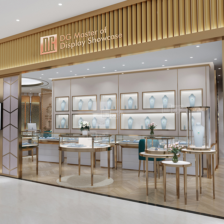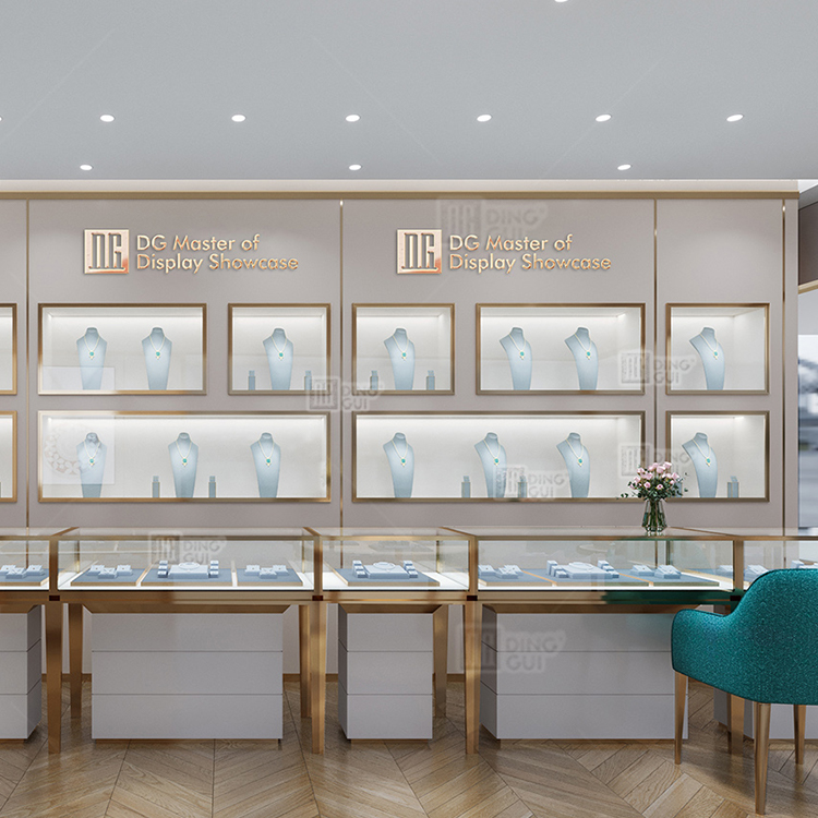 DG display showcase's process of working with our clients is a challenging one, as we need to consider their needs as well as the competitive situation in the market. However, we always believe that through our professional services and quality products, we can create the best display for our clients. In 2022, the client found us through the internet. In the previous search, the customer had found two jewelry display counterparts but was not very satisfied. After the client saw our website, he liked our products and design very much, thought we were very professional, and decided to choose us to design the whole store's display case for him. This is a very celebratory moment because we know that the customer can firmly choose us, it represents the customer's trust and recognition of us.