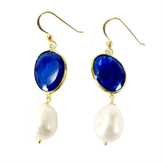 • Material: lapis rose-cut stone (15.5 x 13mm), white pearl oval (10.5 x 12mm).