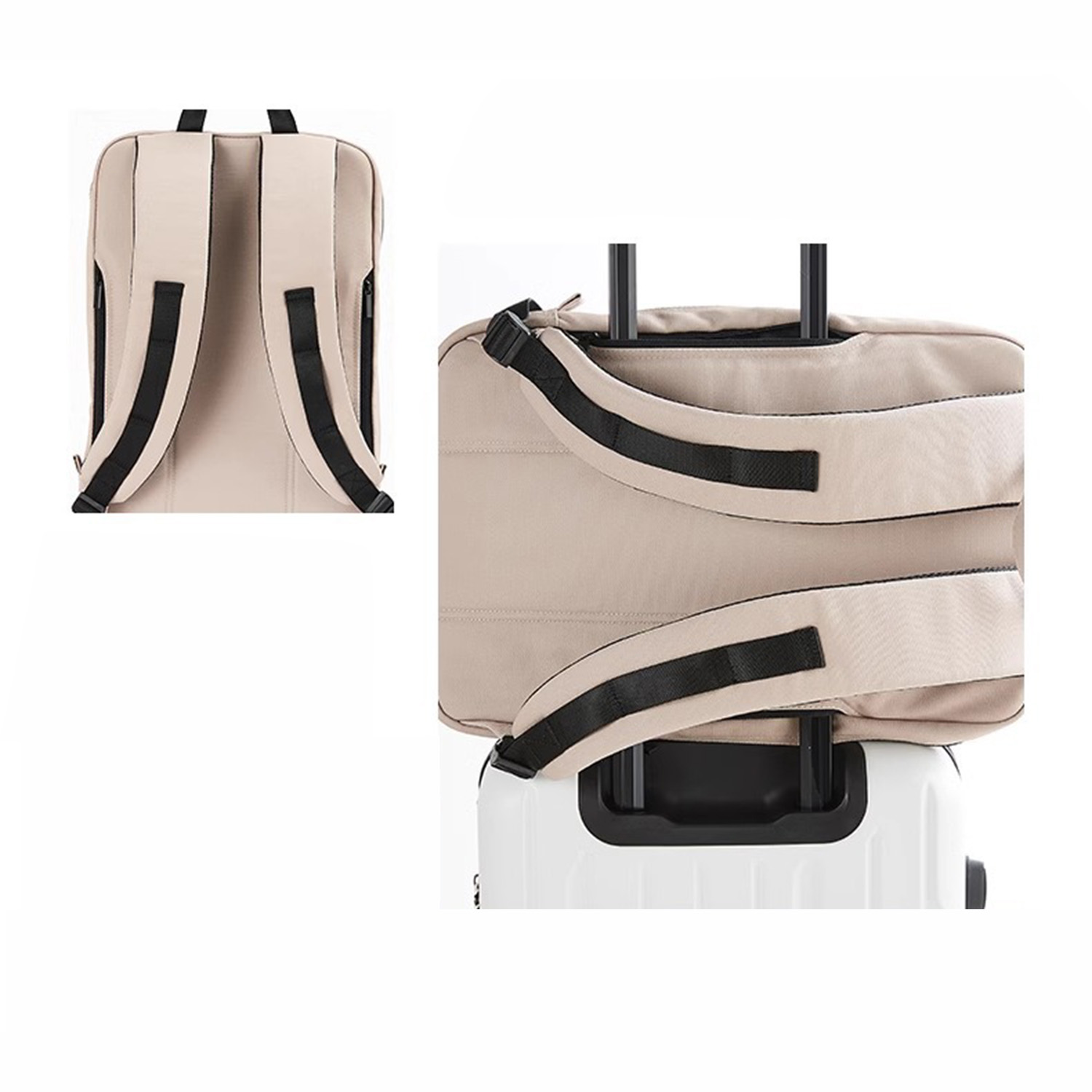 A backpack—also called knapsack, schoolbag, rucksack, pack, booksack, bookbag, haversack, packsack, or backsack—is, in its simplest frameless form, a fabric sack carried on one's back and secured with two straps that go over the shoulders; but it can have an external or internal frame, and there are bodypacks.