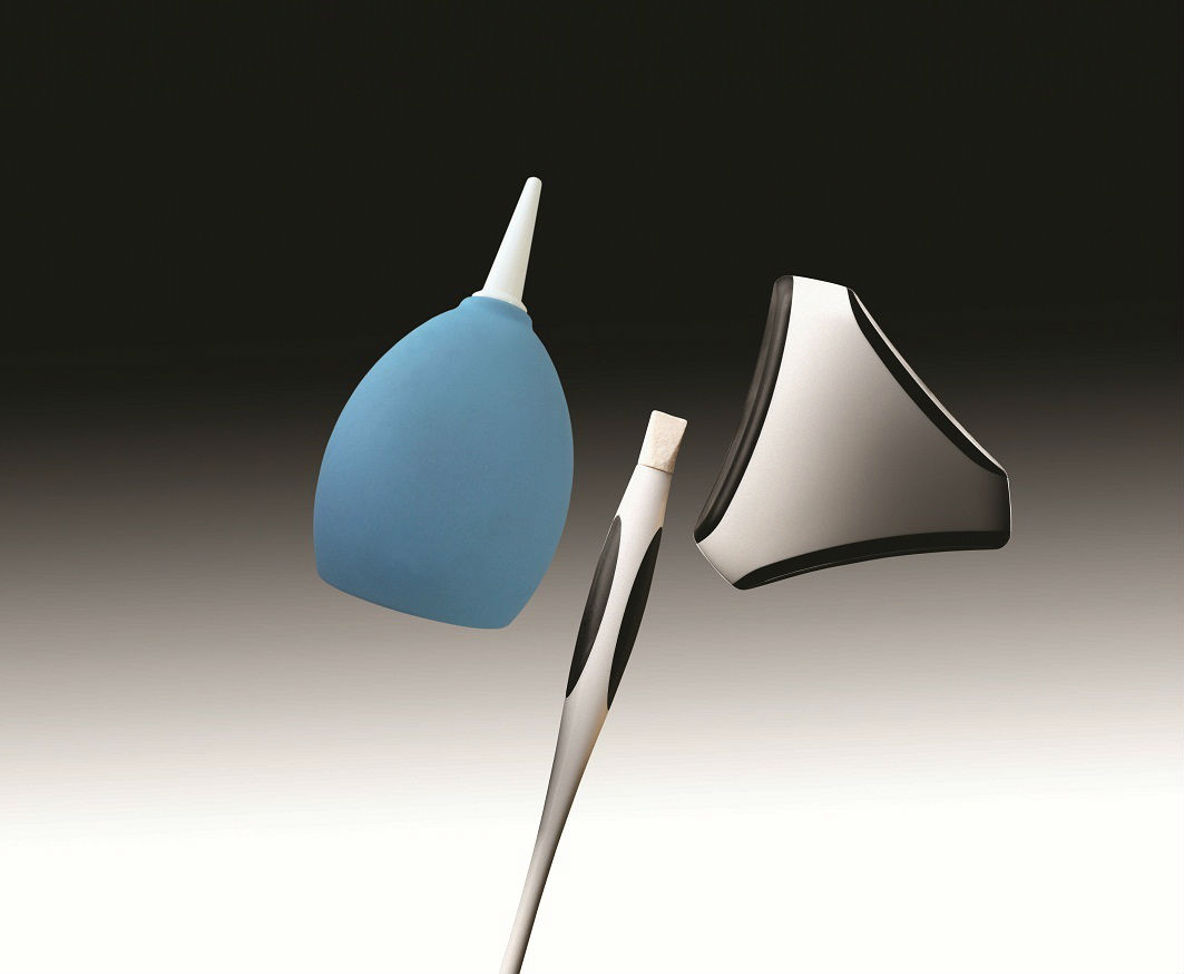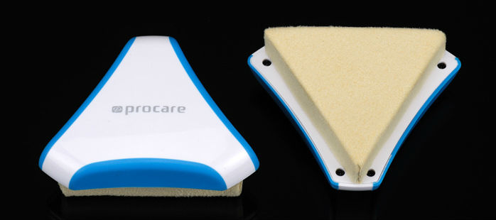 - Patented triangular screen cleaner with an ergonomic handle to clean all corners of the screen.