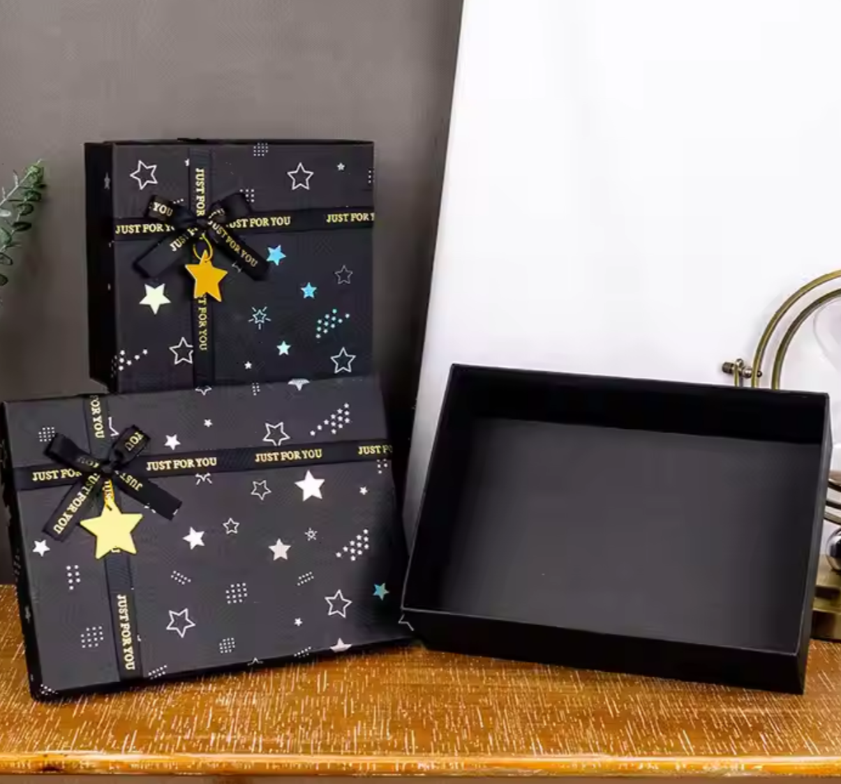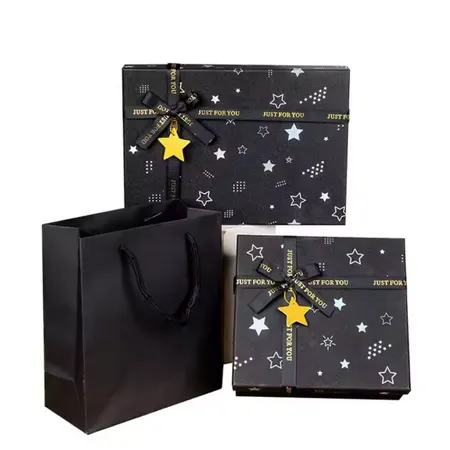 Large Black Square Paper Box with UV Advantage Heaven Earth Cover Bow for Christmas Valentine's Day Birthday Gift Packaging