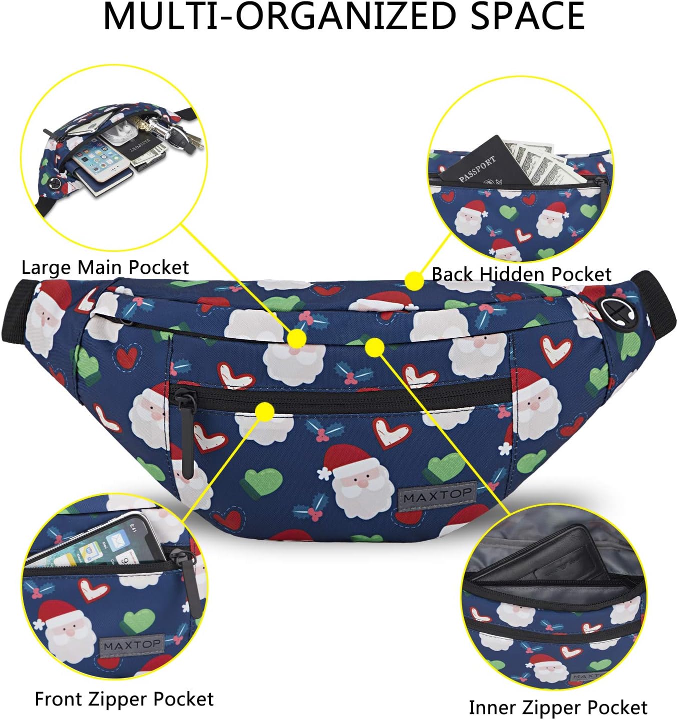 Large Crossbody Fanny Pack with 4-Zipper Pockets