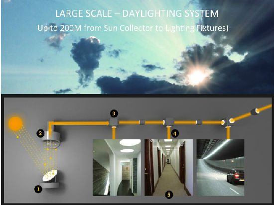 Transmit Sunlight from Sun collector to lighting fixtures : up to 200 meters