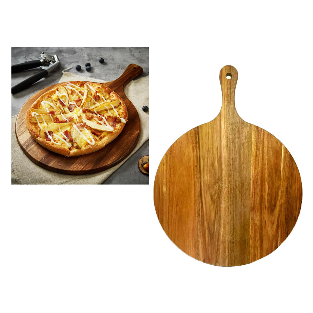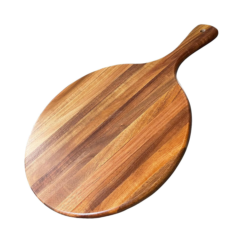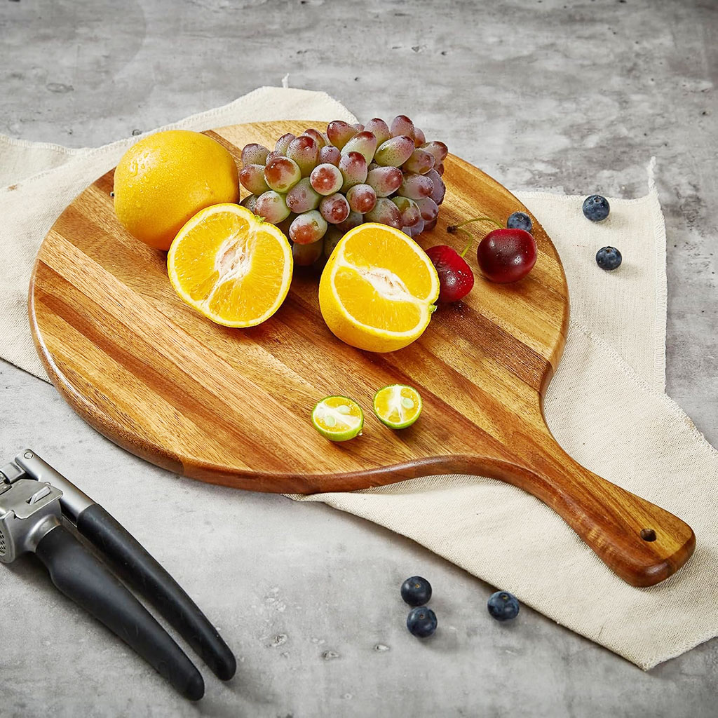 Large-sized Round-shaped Acacia Wooden Cutting Board with Handle includes the following features :