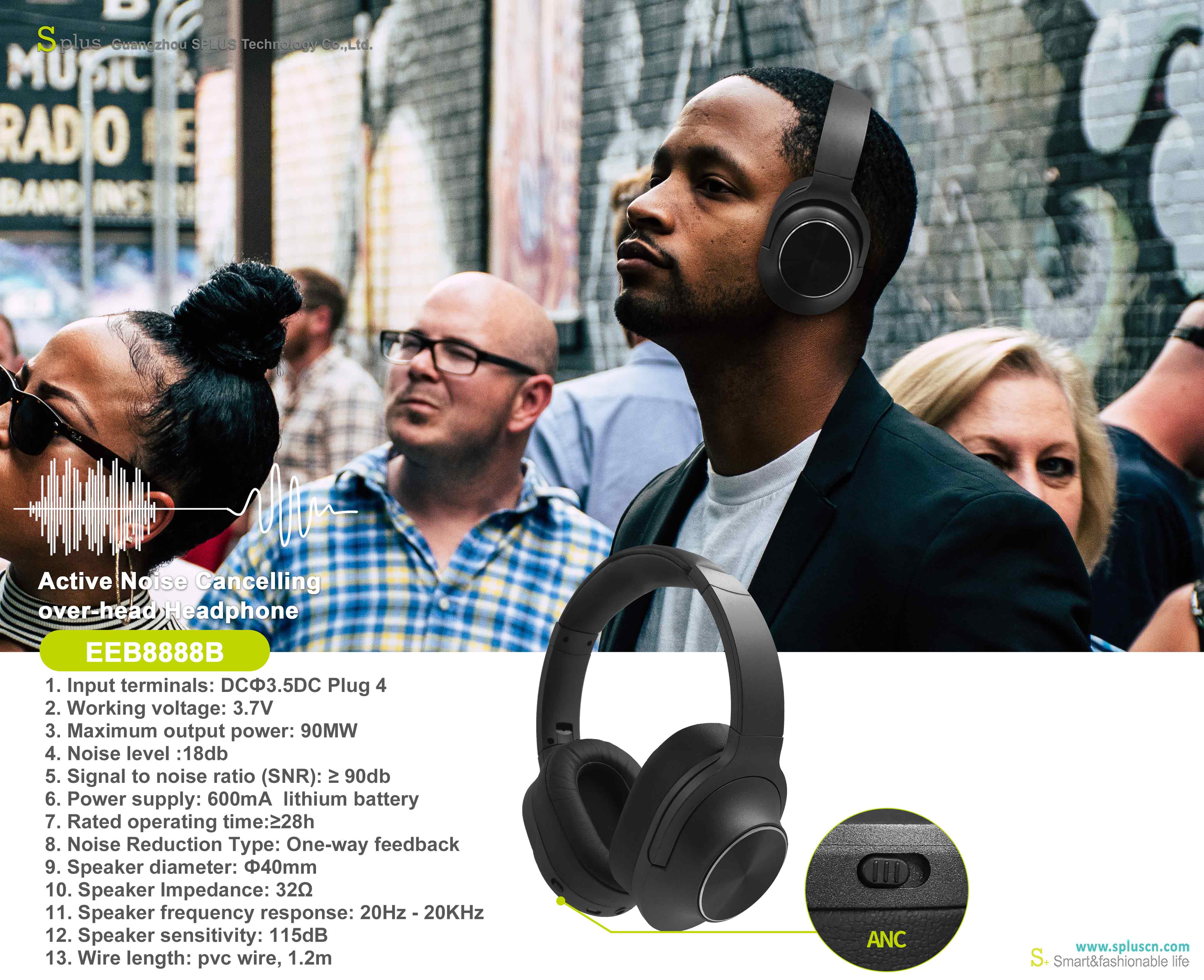 Latest AUDIO HiFi Stereo ANC Over Head Deep Bass Headset Active Noise Cancelling Headphones OEM