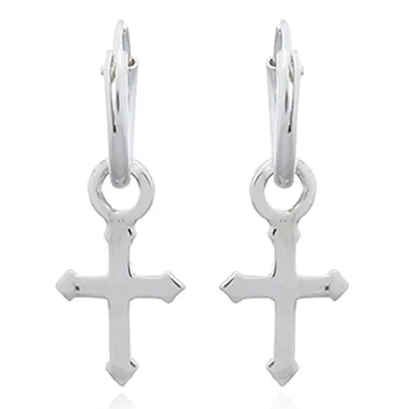 Latin Cross Sterling Silver Earrings Hoop