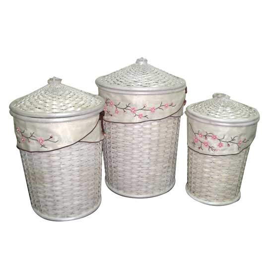 The 3-piece laundry basket set is woven with high-quality rattan with a floral embroidered cotton strap as decoration. It comes with a lid with a knob for easy handling. This delicate laundry basket set adds a great complementing touch to your decor.