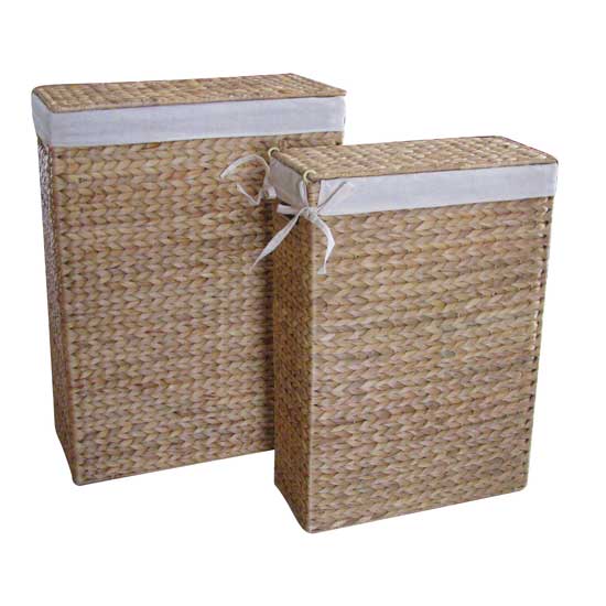 The laundry basket is handmade with high-quality water hyacinths. It comes with a lid, contrasting strap and ribbon for a decorative touch. This laundry basket is great for storing your dirty clothes.